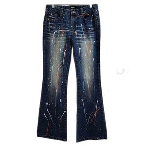 DOJ Jeans Womens 30 Blue Denim Paint Splatter Flare Distressed Grunge Y2K Boho