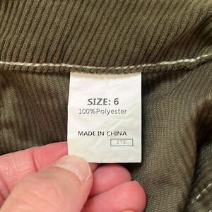 These pants are made by DOKOTOO. They are a dark olive green corduroy cargo style with a straight leg cut. Size 6 and in very nice pre owned condition. Smoke and pet free home.