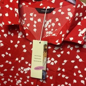 DOKOTOO Medium Women’s Polyester Collard Button Up Beautiful Red Everyday Wear Casual Business Romantic Sheer Blouse