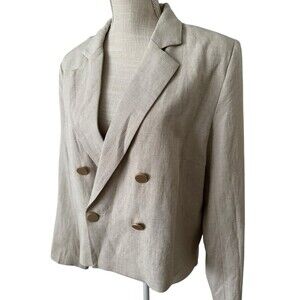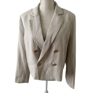 DOLAN Left Coast Pleated-Back Cropped Blazer Gold Buttons Linen Blend Size L