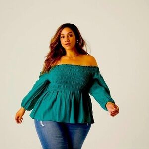 DOLAN Puff Sleeve Smocked Babydoll Blouse size 2xl