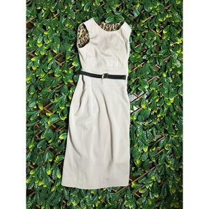DOLCE AND GABBANA Beige Minimalist Belted Midi Dress Fits like Size 2
