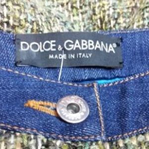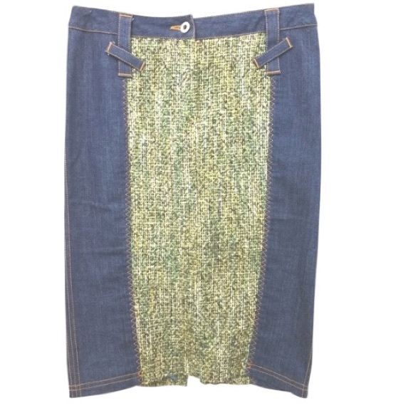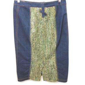 DOLCE AND GABBANA GREEN TWEED TRIM BLUE PENCIL DENIM JEAN SKIRT 6