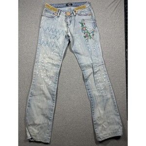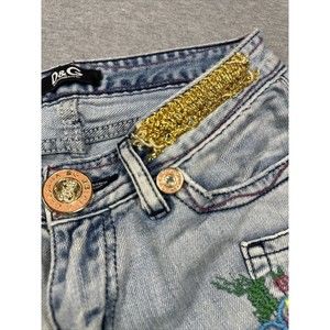 DOLCE AND GABBANA Jeans Designer Floral Embroidered Y2K Distressed Measure 26x30