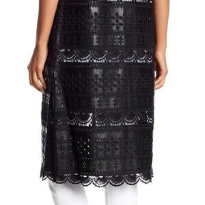 DOLCE CABO Black Long Faux Leather Vest Duster Topper M Medium $275 NWT
