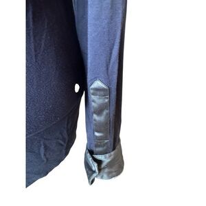 DOLCE & GABBANA BIB Silk BLOUSE Black Blue Collared Pleated Top Italy D&G Shirt