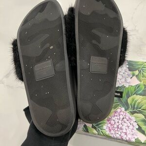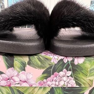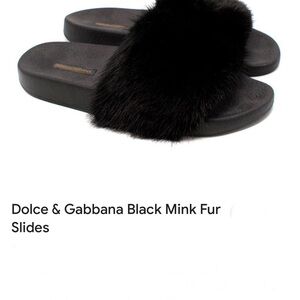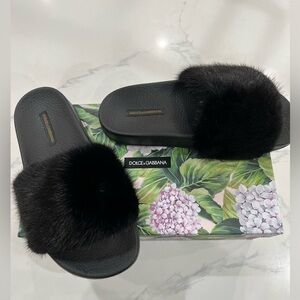 DOLCE & GABBANA Black REAL MINK FUR & RUBBER SLIDES CIABATTA SAINT BARTH sz 38