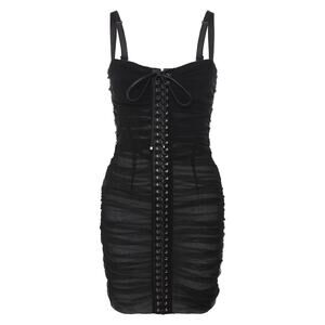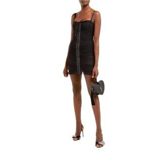 DOLCE & GABBANA Black Ruched Tulle Lace-Up Corset Dress Mini 42 M