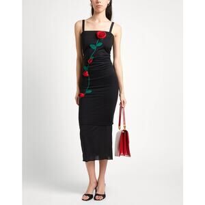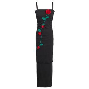 DOLCE & GABBANA Black Runway Rose Applique Fitted Long Dress Red S 40