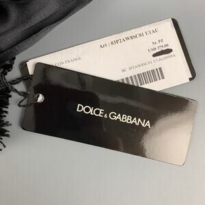 DOLCE & GABBANA scarf comes in a black silk satin material featuring a fifteen inch fringe trim.