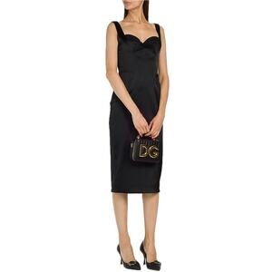 DOLCE & GABBANA Black Stretch Satin Sweetheart Bodycon Dress Midi 42 M