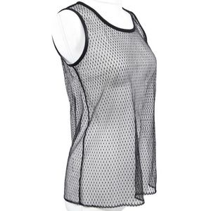 • Sheer netted tank top in a classic black color.