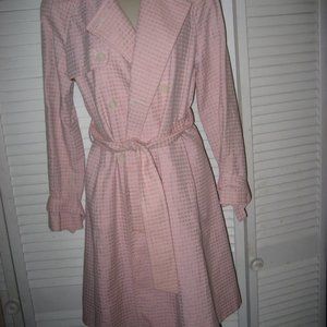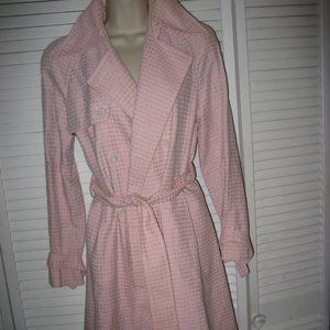 DOLCE & GABBANA MADE IN ITALY FULLY LINED COAT. TRENCH STYLE. PINK & WHITE SQUARES CHECKERED. BUTTON UP. TIE BELT