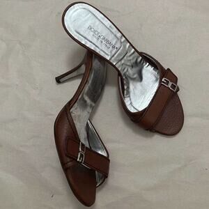 DOLCE & GABBANA CONAC PEBBLE LEATHER SLIDE SANDALS SIZE 6 1/2