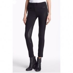 Stunning Black elegant moto /riding style Dolce &Gabbana pants With suede detail at knee on inseam & Velcro closure @bottom of each pant leg opening wear 2way almost skinny closed wider when open 2hip sided silver colored zip up pockets 1back zipup pocket silver metal detail at waist with company name engraved as well as on pockets zipper pulls waist across 15 1/2 outseam 36 1/2 inseam 30 retail$895 +tax shown on pict cover of similar model except that mine are much nicer then cover I found