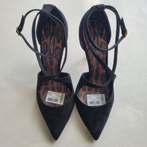 DOLCE & GABBANA NWT BELLUCCI Black Suede Strappy Stilettos 38.5 US 8.5