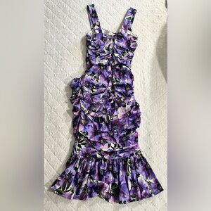 DOLCE & GABBANA PURPLE FLORAL PRINT SILK PENCIL DRESS- SIZE 42 (US 6)