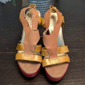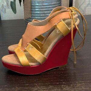 DOLCE & GABBANA Red Patent Leather Wedge Sandals