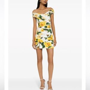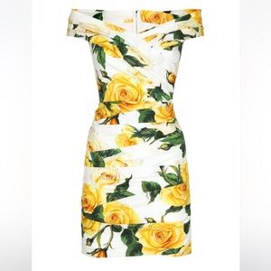 DOLCE & GABBANA Rose Print Off-the-Shoulder Minidress