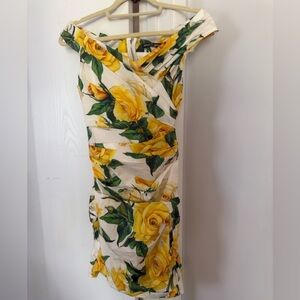 DOLCE & GABBANA Rose Print Off the Shoulder Mini Dress