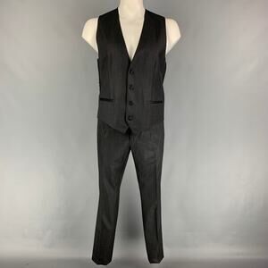 DOLCE & GABBANA Size 42 Regular Charcoal Black Wool Blend Vest Suit