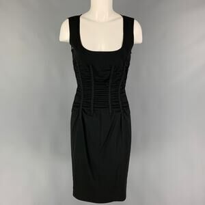 DOLCE & GABBANA Size 6 Black Acetate Blend Ruched Sleeveless Cocktail Dress