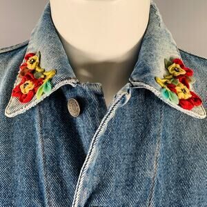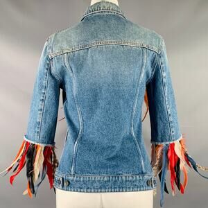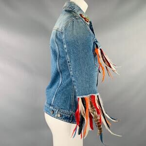 DOLCE & GABBANA Size XS Blue Multi-Color Cotton Feathers Denim Jacket
