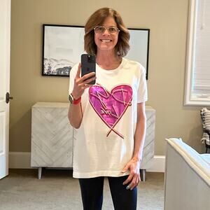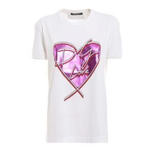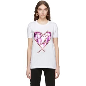 DOLCE & GABBANA White Metallic Heart T-shirt IT42