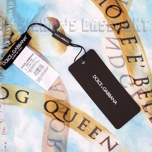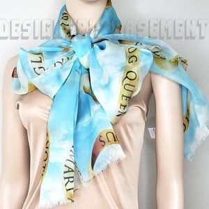Brand New Authentic DOLCE & GABBANA sky blue clouds DG QUEEN BELLEZZA ribbons 24"x80" shawl