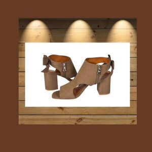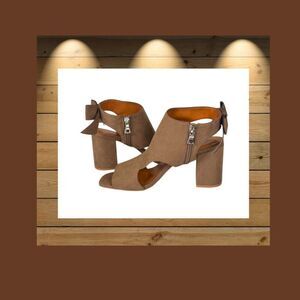 Super Cute Vegan Suede Open Toe Sandal with a stacked block heel, side zip closure and bow tie accessory at the ankle.