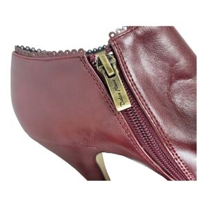 DOLCE NOME Inside Zip Ankle Booties in burgundy/merlot/wine, previously owned, scratch on back side of right bootie, see pics 10 & 14 otherwise excellent condition Euro size 36
