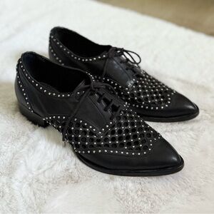 DOLCE VITA 9.5 RARE Women’s Howell Leather Mesh Studded Retro Oxfords • REVOLVE