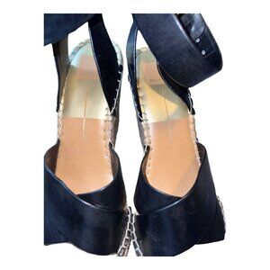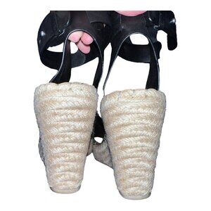 DOLCE VITA Black Leather Open Toe Ankle Strap Espadrille Wedge Sandals Sz 10