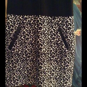 Worn once. This dress! It is extraordinary! Hugs the body but you aren't a sausage. Pix don't do it justice! It is piece that can be dressed up or down. I wore it to a dressy occasion, but it can be worn to the office as well. It is sexy and so sophisticated. I believe in this dress. It says petite medium but is consistent with the measurements of a petite 4/6. I am now a petite 8, tight enough to be uncomfortable on me, so all you petite 4/6 women, this dress is a life changer!