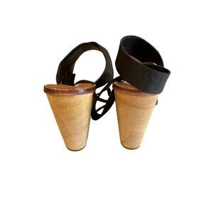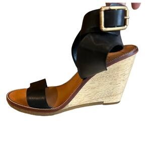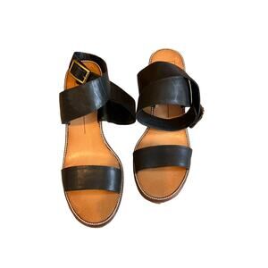 New DOLCE VITA DV Black Leather Wedge Sandals with ankle strap detail, size 8.5 Approximately 4 1/4" heel; 1/2" platform
