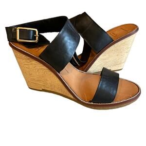 DOLCE VITA DV Black Leather Wedge Sandals 8.5