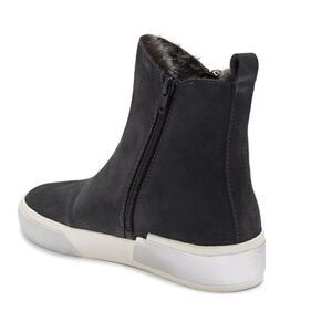 DOLCE VITA Faux Shearling Sneaker Wedge Bootie, Black Leather, Size 8 1/2, NWT