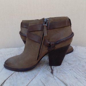 DOLCE VITA Harlene Brown Leather Braided Harness Strap Ankle Booties