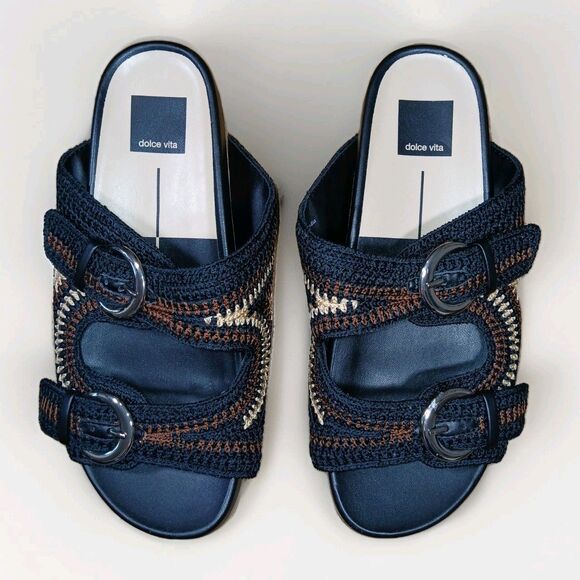 DOLCE VITA New Crochet Platform Slide Sandals Women's Size 8.5 Cork Weave Black