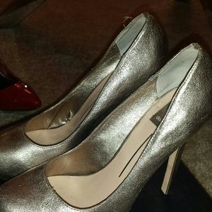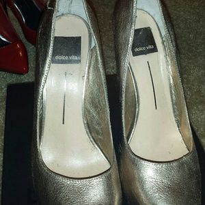 These shoes are a sort of light gold/silver tone with a hidden platform Dolce Vita leather.