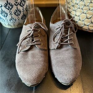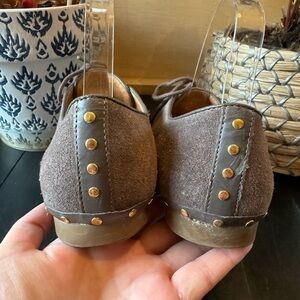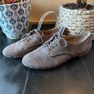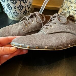 DOLCE VITA Shoes Oxfords Taupe Suede Lace Up Flats w/ Metal Stud Decal Size 8.5
