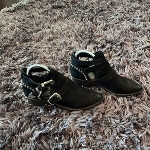 DOLCE VITA Size 6.5Black Suede Silver Spur/Triple Buckle Ankle Bootie; Preloved