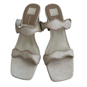 DOLCE VITA Tan White Leather Double Strap Sandals Heels Size 12 NEW NWOB