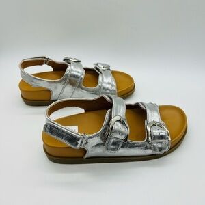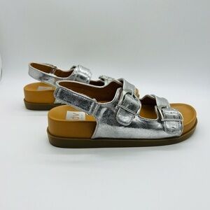 DOLCE VITA WOMEN‘S SHINY SILVER STRAPPY ALAMEDA SANDALS SIZE 8