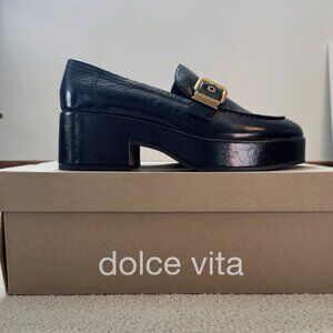 DOLCE VITA Yonder Midnight Crinkle Patent Platform Loafer Women’s Size 9.5