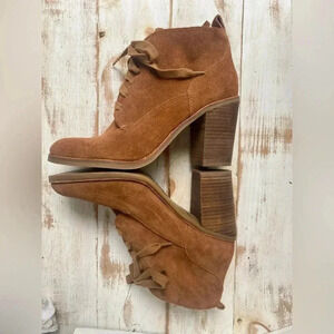 DOLCE VITA sueded lace-up cognac brown booties women’s sz 10 EUC heeled boots