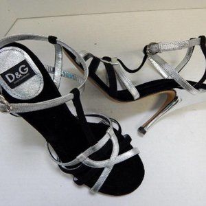DOLCE GABBANA Silver leather and black suede strappy stiletto heels covered with lucite silver mirror heels. The high-heeled sandals are incredibly sexy very elegant with "look at me" style, the perfect pair of sandals.