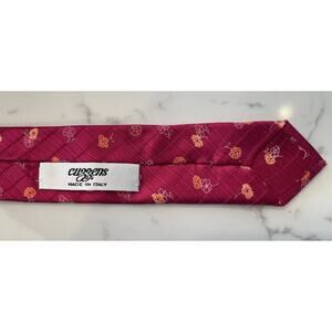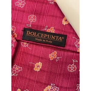 The DOLCEPUNTA for Cuzzens Luxury Floral Foulard Italian 100% Silk Tie is a designer accessory for men, featuring a beautiful pink floral pattern on high-quality silk material. Made in Italy, this XL tie measures 61.25 x 3.75 inches, adding a touch of luxury and style to any formal outfit. The brand's reputation for excellence and attention to detail make this tie a standout piece for those looking to elevate their business or formal wear.