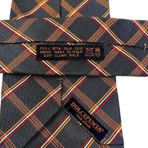 DOLCEPUNTA Mens Silk XL Necktie ITALY Luxury Necktie Brown Check Plaid
