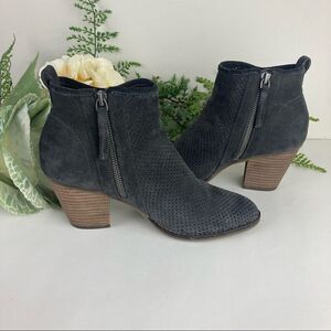 This boot from Dolce Vita is crafted in a supple suede that is perforated with tiny holes. Manmade sole and stacked heel